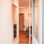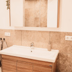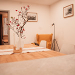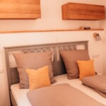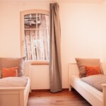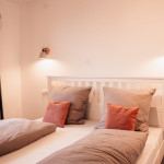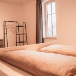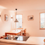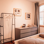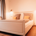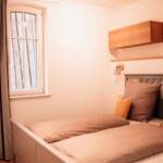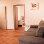Unsere Ferienwohnung Emil befindet sich im 1. Stock. Fühlen Sie sich auf 70 m2 wie zuhause und verbringen Sie mit Freunden oder der Familie im offenen Wohn-/Essbereich gemütliche Stunden. In den zwei Schlafzimmern, von welchen eines mit einem 1,80 m breitem Bett und das andere mit zwei Einzelbetten ausgestattet ist, finden bis zu vier Personen Platz. Das Sofa im Wohnbereich bietet zwei weitere Schlafplätze.