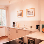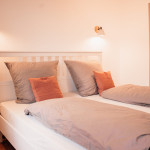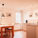 Die Ferienwohnung Charlotte befindet sich im Erdgeschoss und ist mit ihren 75 m2 für bis zu vier Personen ausgelegt. Die zwei Schlafzimmer sind jeweils mit einem 1,80 m breiten Bett ausgestattet. Im offenen Wohn-/Essbereich lässt es sich gemütlich zusammensitzen und verweilen.